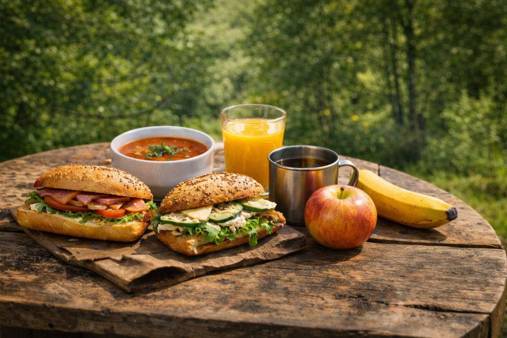 Klimmen, klauteren, rennen, lachen… en dan even bijtanken. Met ons lunchbuffet stap je weer vol energie het park in. Je krijgt per persoon twee belegde broodjes, een stuk handfruit en een drankje naar keuze: koffie, thee, melk of jus d’orange. Ideaal als smakelijke tussenstop tijdens jullie outdoor avontuur.